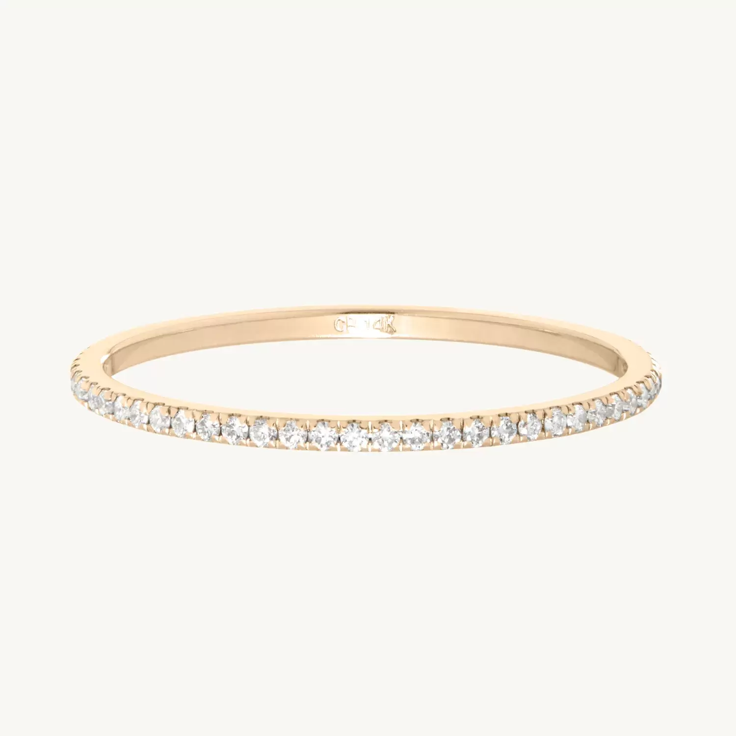 The slimmest, sparkliest pavé eternity band in all the land. Designed in our Brooklyn studio and made with 100% recycled diamonds.