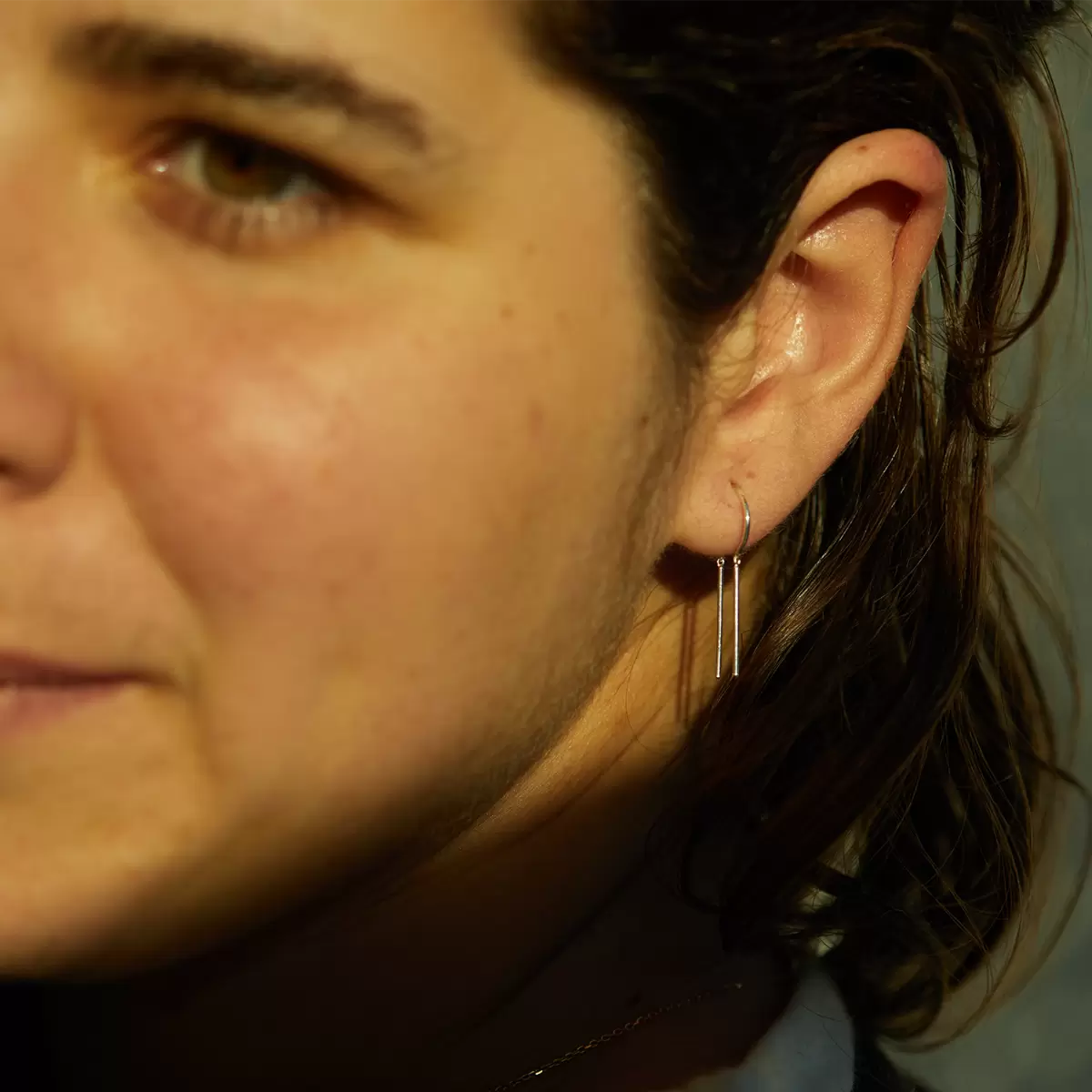 Little wind chime earrings that catch the light when they move (but don’t make that wind chime-y noise)! Sold as singles.