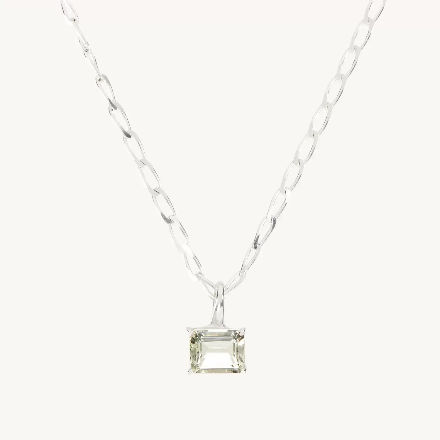 A luminous green amethyst with a cool and substantial silver chain. This necklace loves to layer.