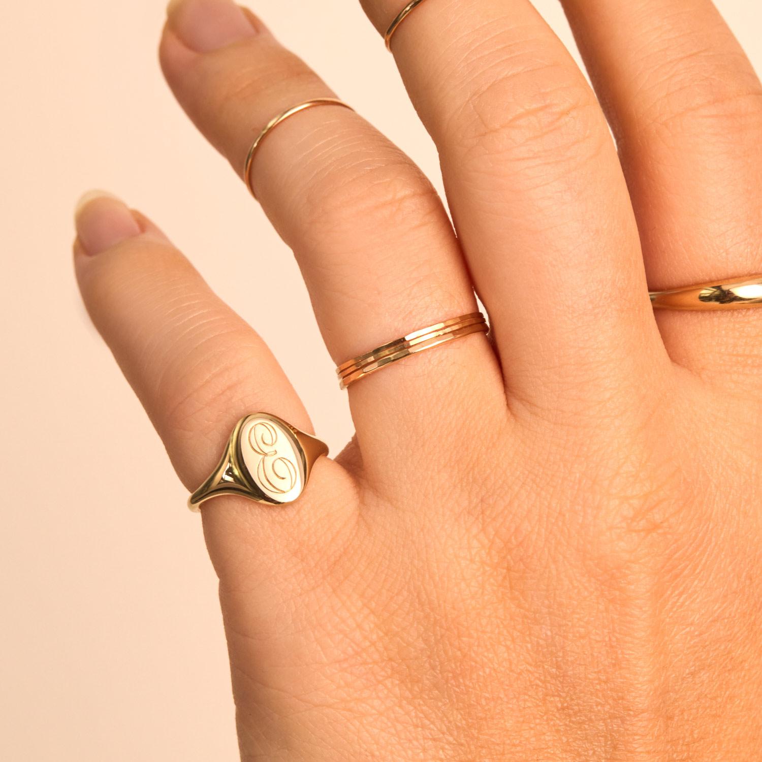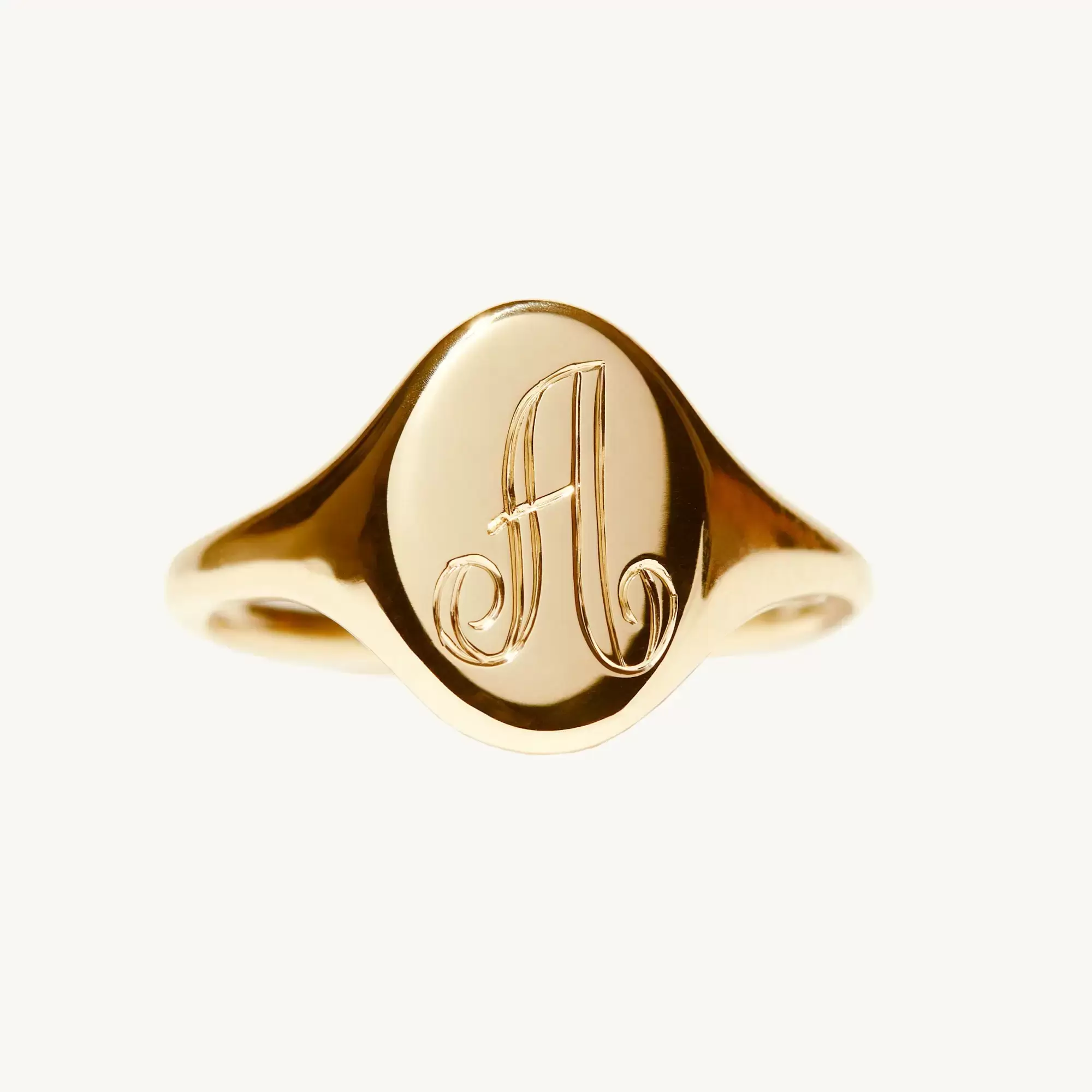 A perfectly proportioned, classic signet ring, scaled especially well for a pinkie finger. A true wear-for-forever piece.