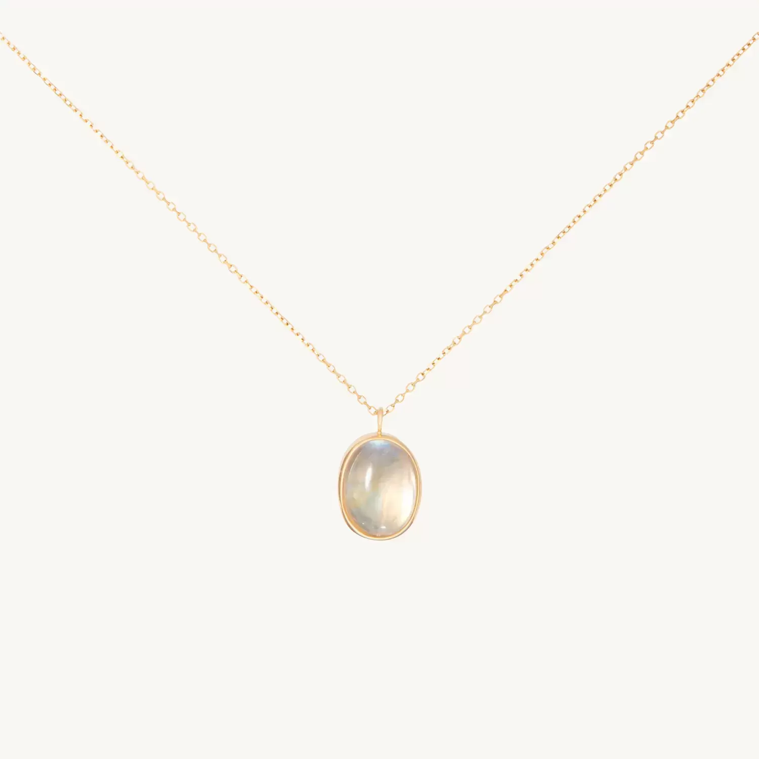 Details14k yellow gold8mm x 6mm oval moonstone 16" chainmade in New York