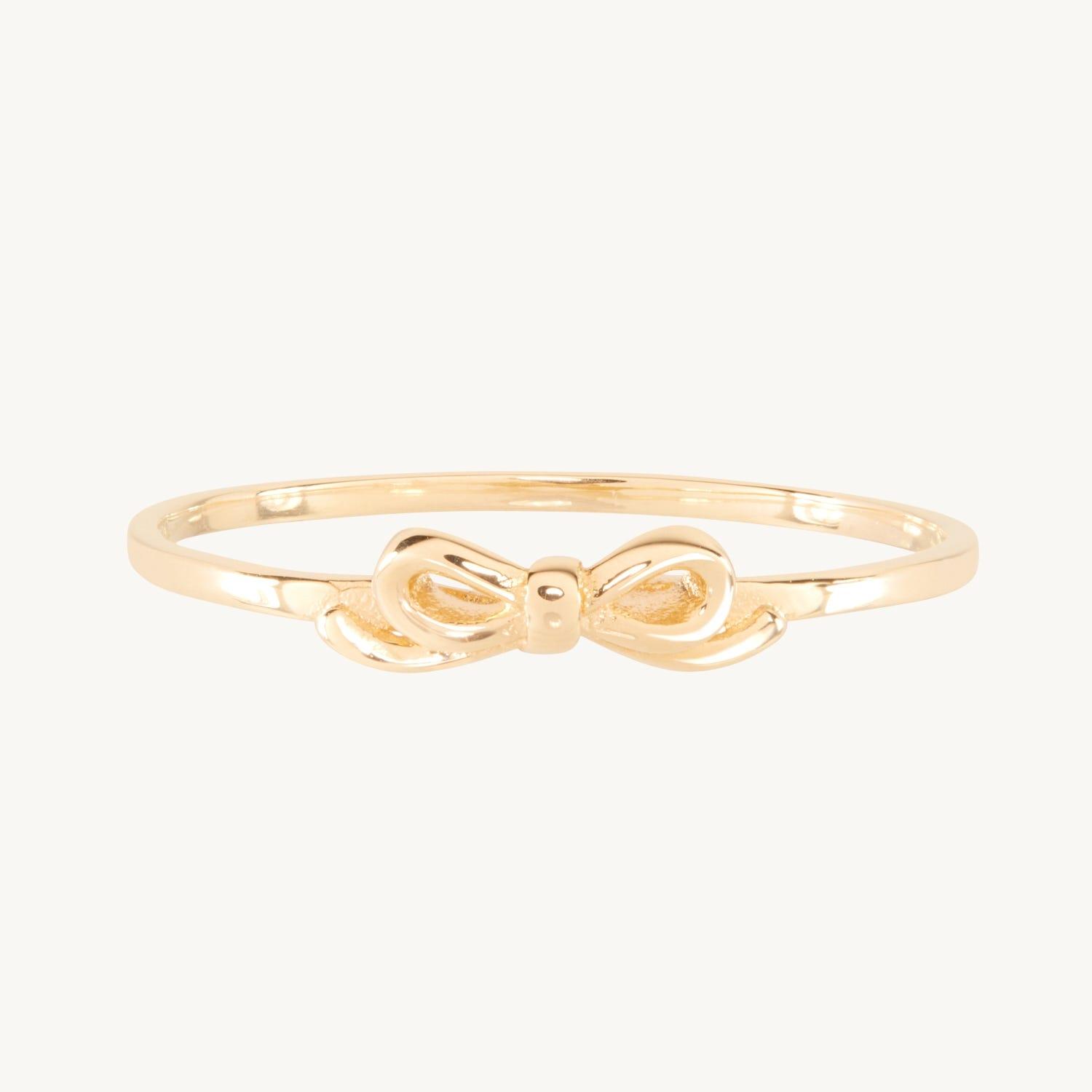 The Toy Boy Ring is gold bow ring and a grown up pleasure, modeled after a perfect bow. Finished with a small, considered detail; behind the bow you'll find the gold ribbon winds around itself, just like a real bow would. We love it on its own, or jumbled in set as a stackable ring. This gold ring looks especially refreshing tucked between diamonds.