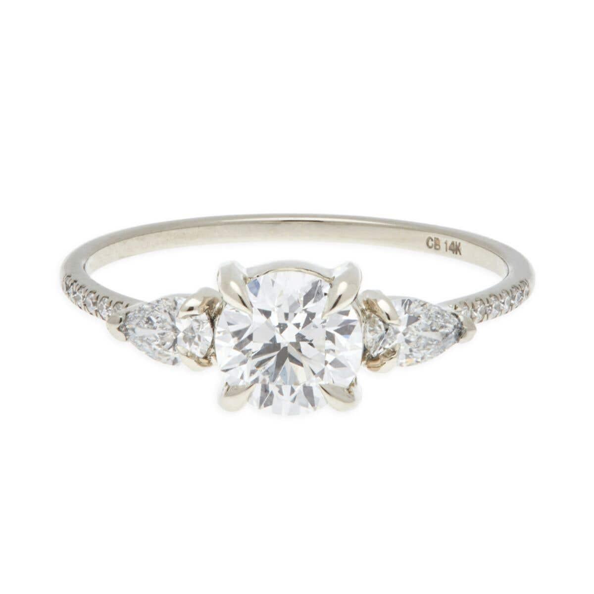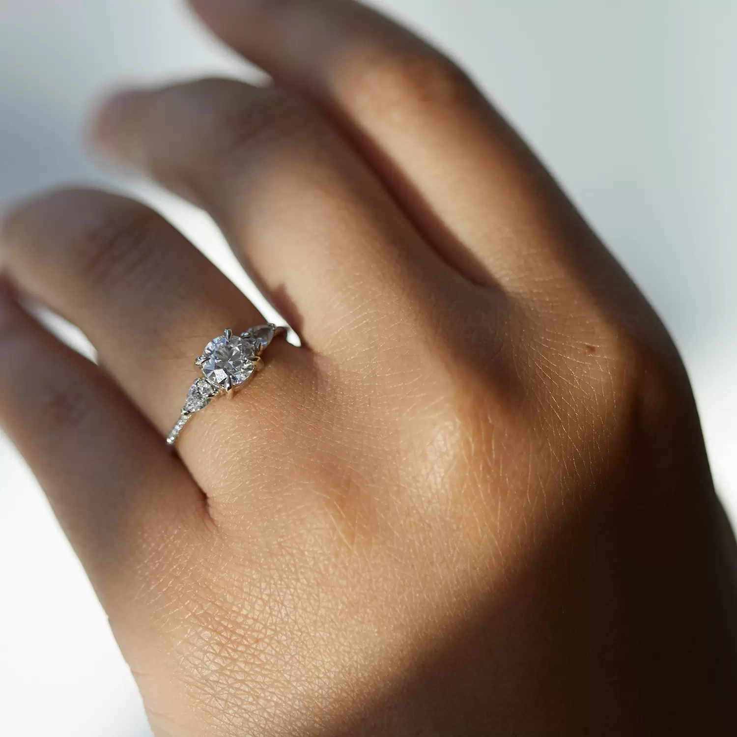 The Swans are elegantly modern, instant heirloom engagement rings with classic lines and proportions; three stones to echo life’s past, present, and future. Each ring couples flawlessly with a multitude of wedding bands—shape shifting in mood and era depending upon the pairing. Deceptively strong, with our signature delicate proportions.